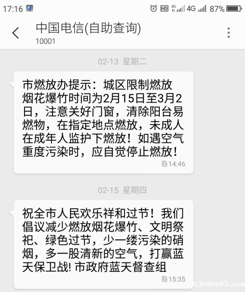 为减少春节期间燃放烟花爆竹对空气的污染,市环保局会同重庆市通信管理局,协调重庆市移动通信公司、重庆市联通公司、重庆市电信公司短信平台,于2月15日向主城区市民群发公益短信。