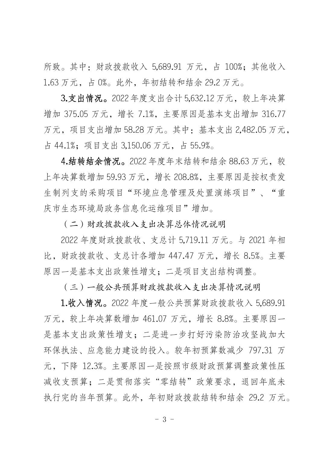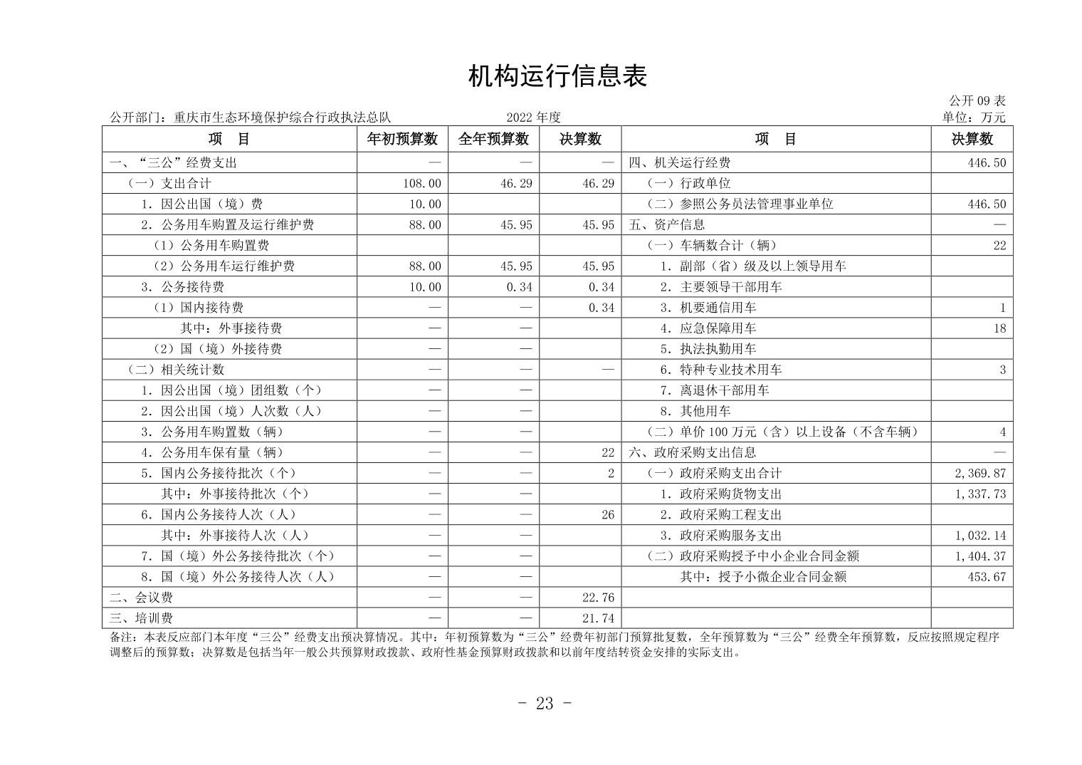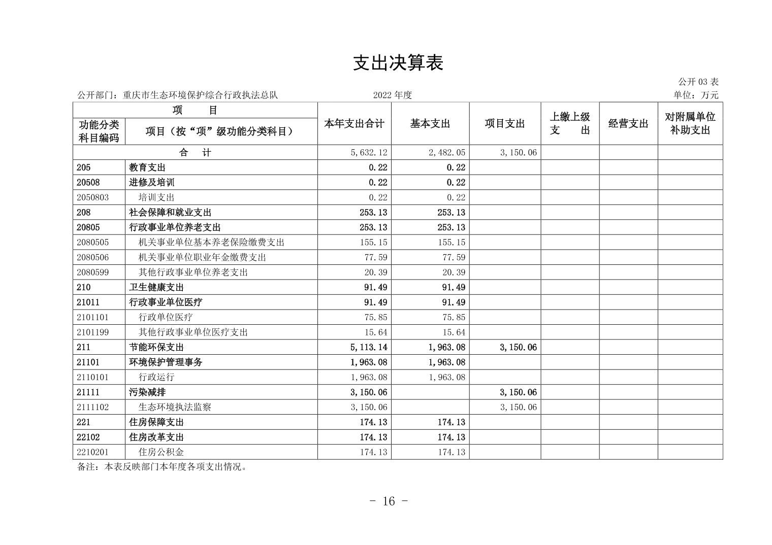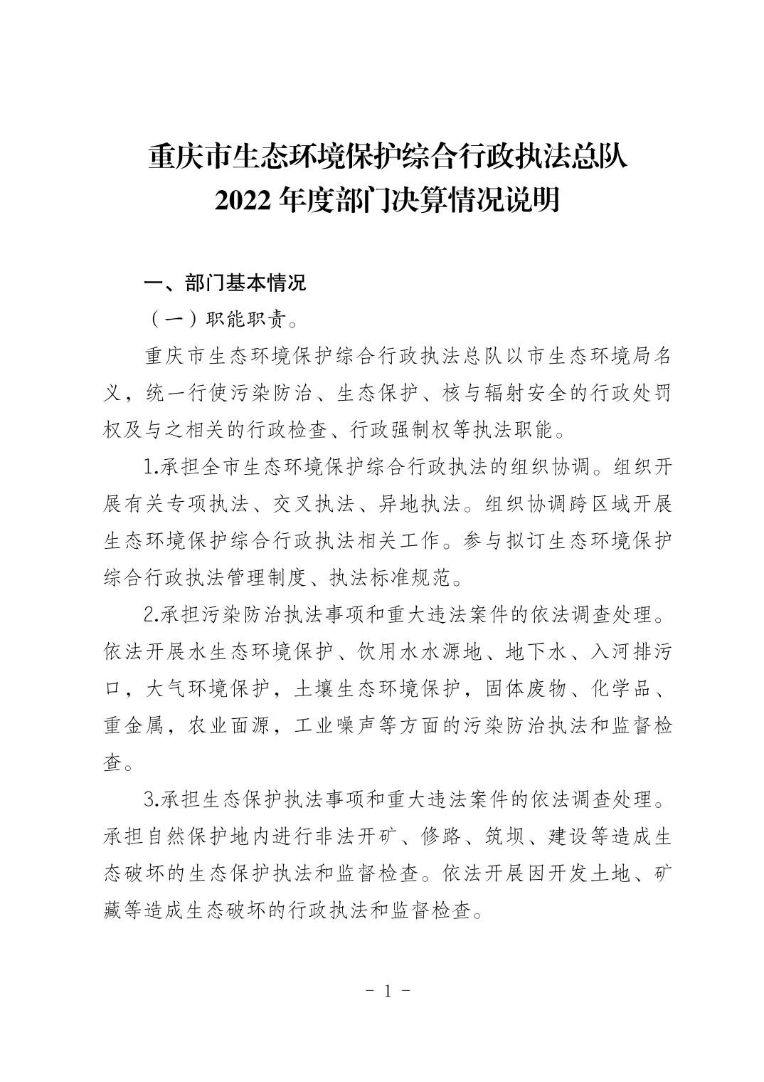 重庆市生态环境保护综合行政执法总队2022年度部门决算情况说明