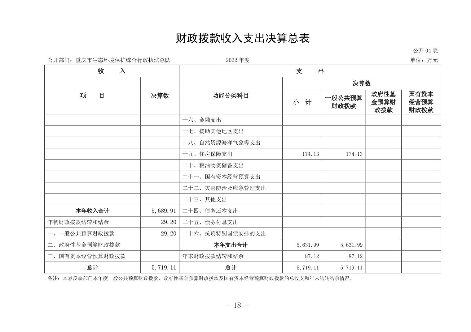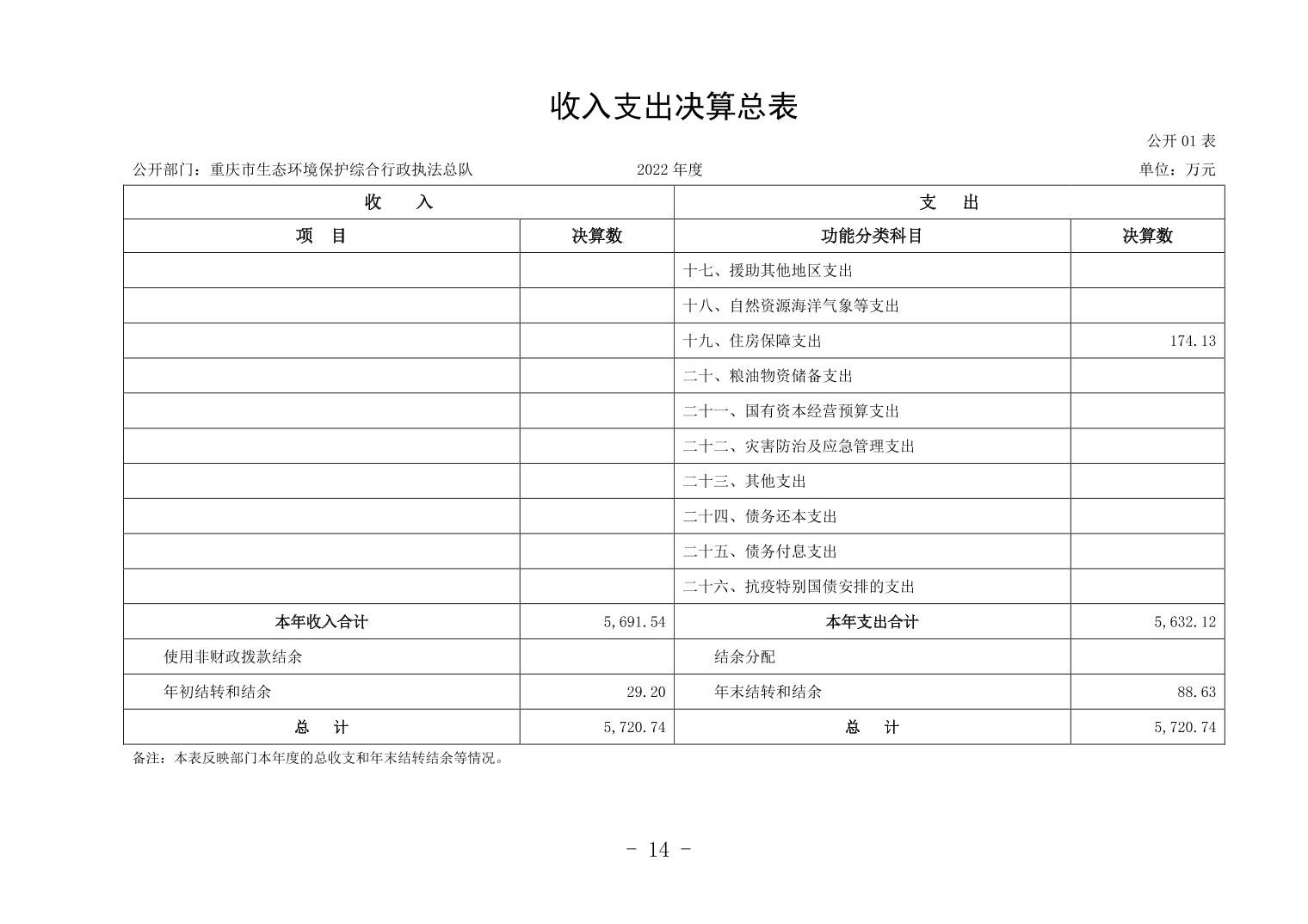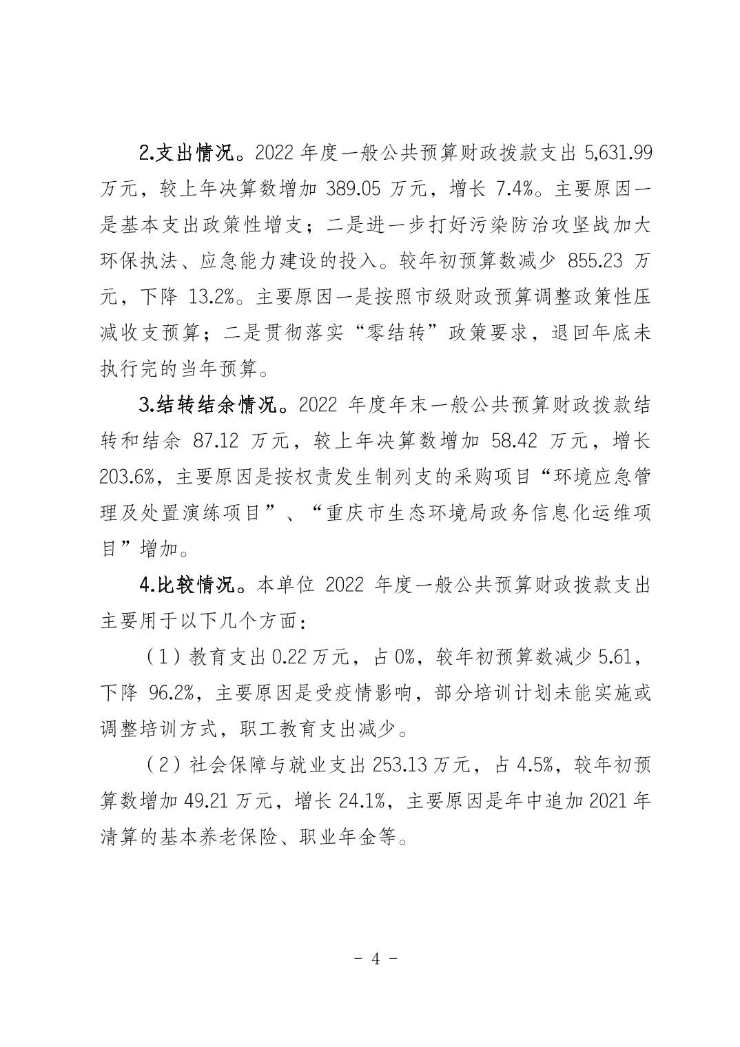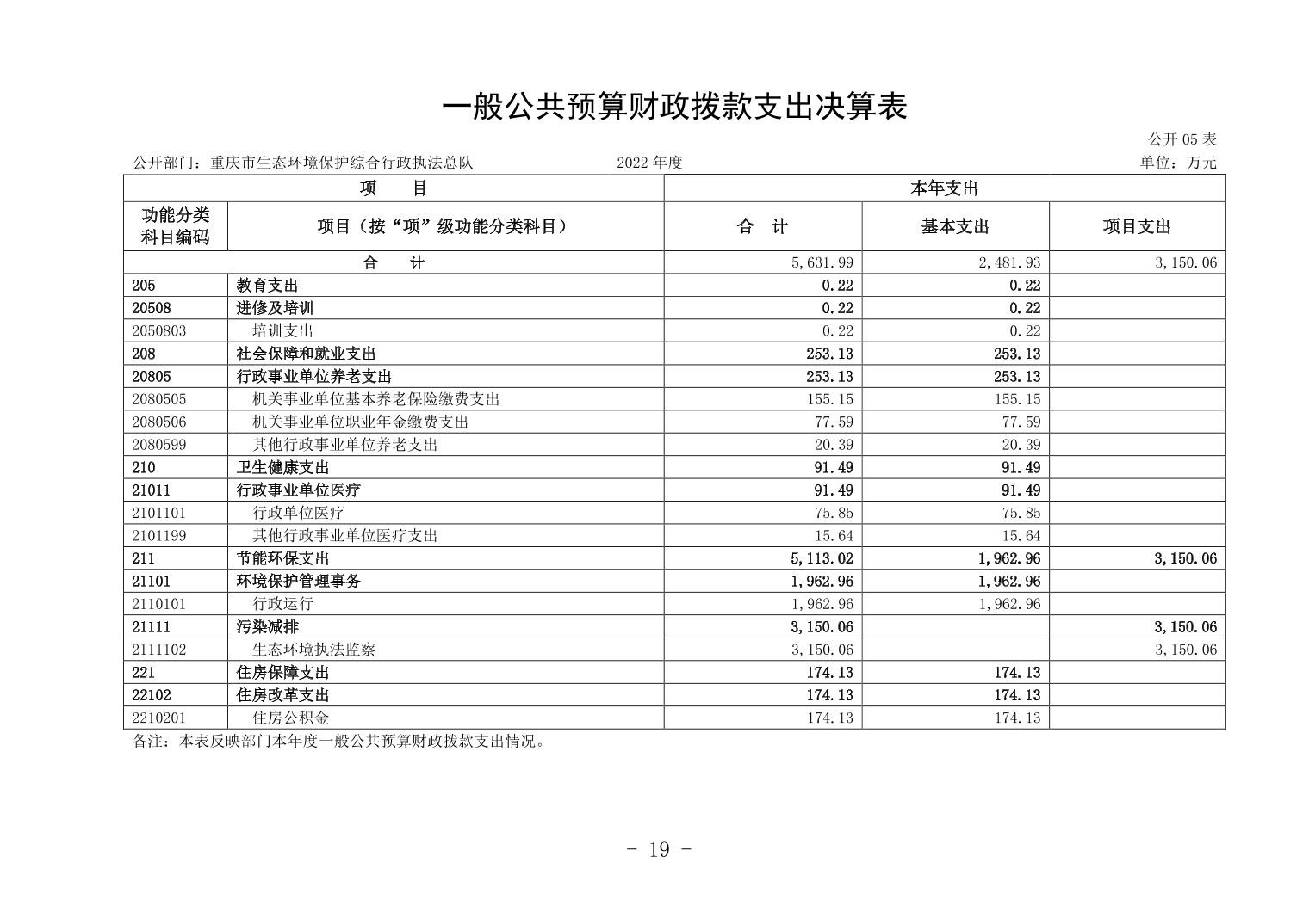 重庆市生态环境保护综合行政执法总队2022年度部门决算情况说明