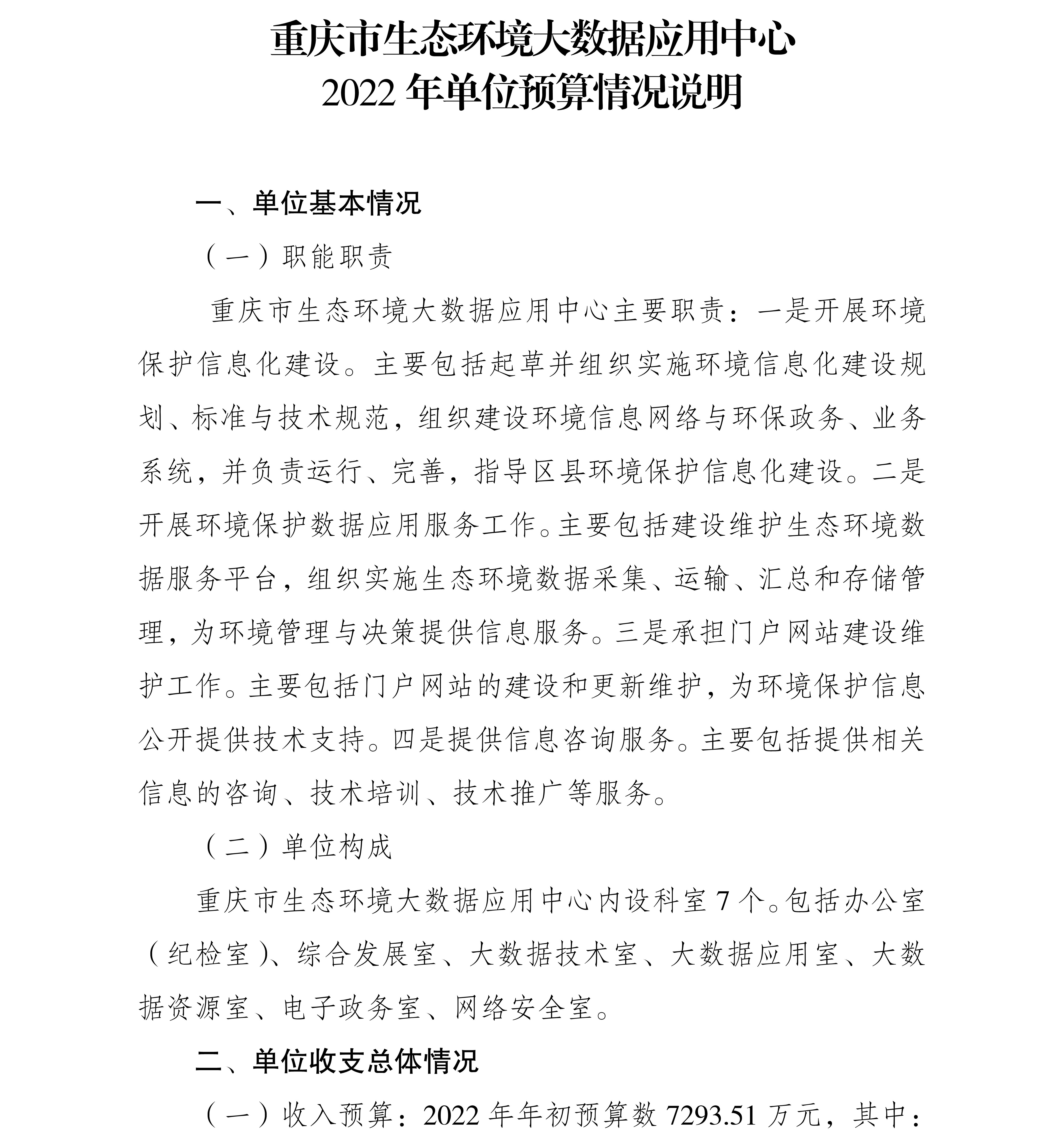重庆市生态环境大数据应用中心2022年单位预算情况说明