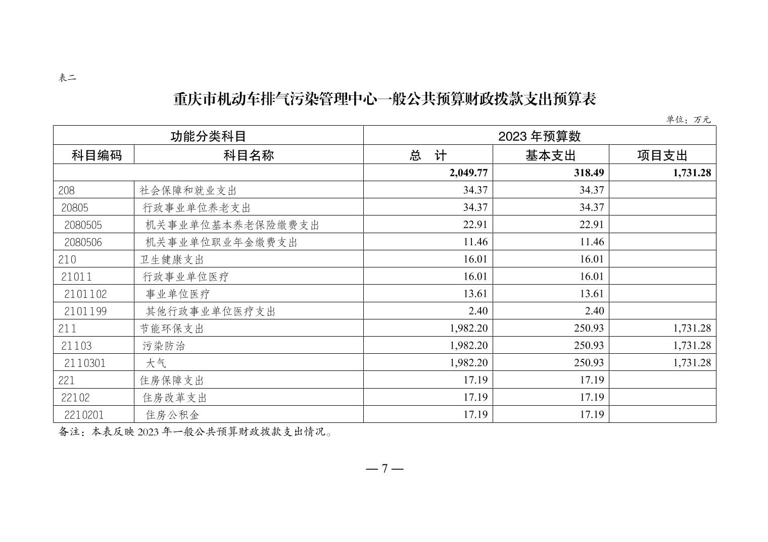 重庆市机动车排气污染管理中心2023年单位预算情况说明