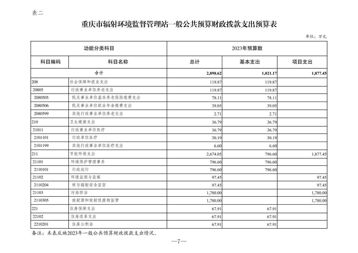 重庆市辐射环境监督管理站2023年单位预算情况说明
