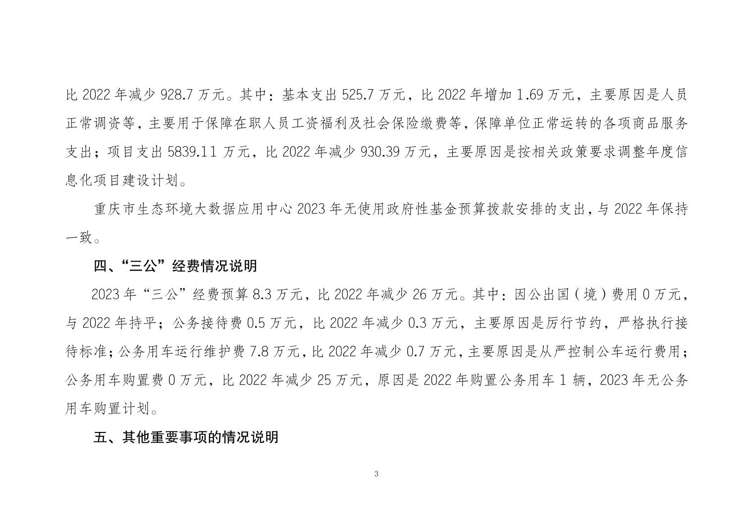 重庆市生态环境大数据应用中心2023年单位预算情况说明